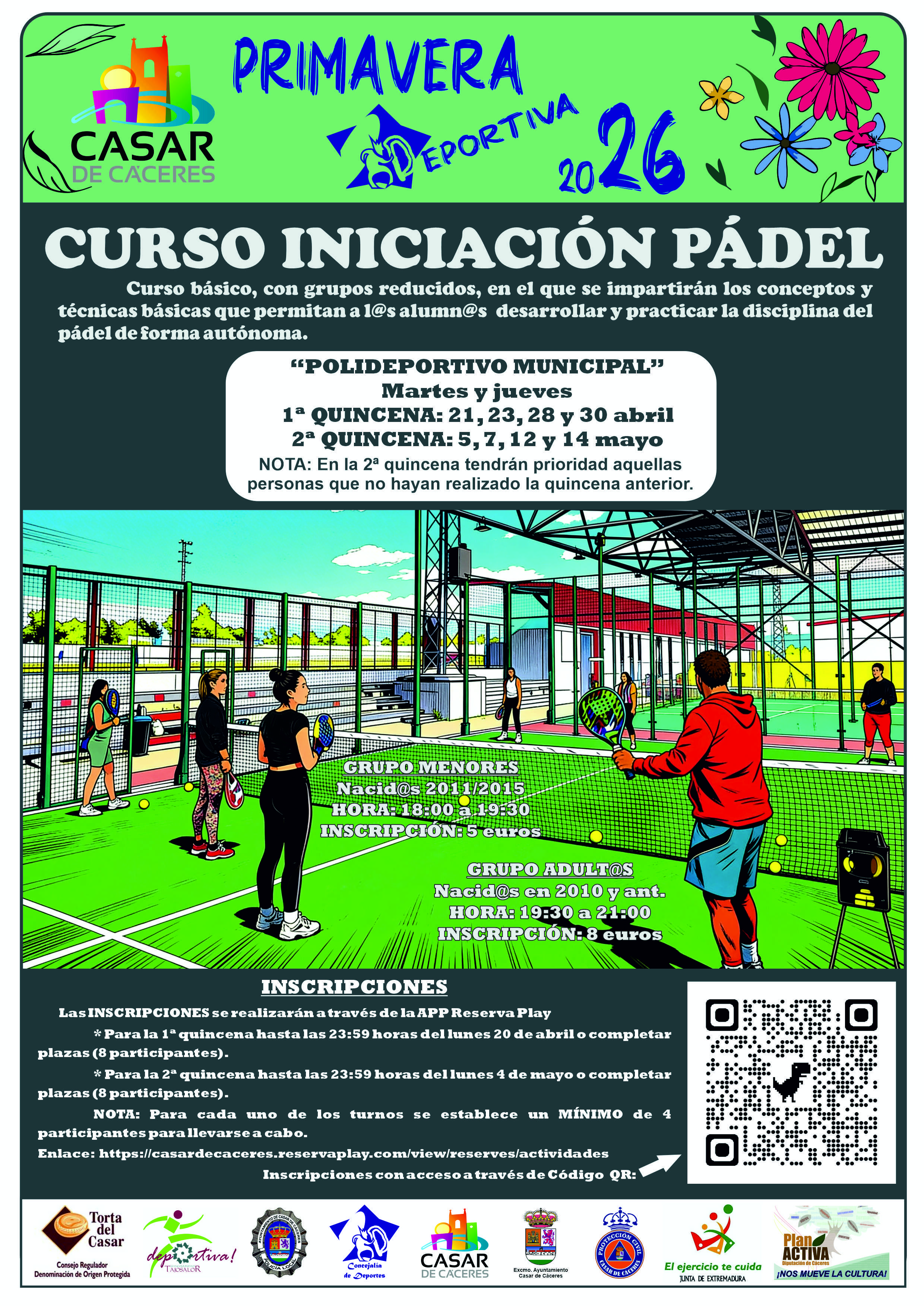Para ello, al igual que en todas las ediciones de la Primavera Deportiva, volvemos a apostar por los Cursos de Iniciación al Padel, donde aprenderemos nociones básicas como el posicionamiento en la pista, el agarre de la pala, normativa básica, etc… de forma entretenida y dinámica de dicha disciplina deportiva.